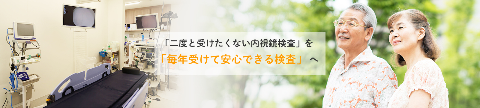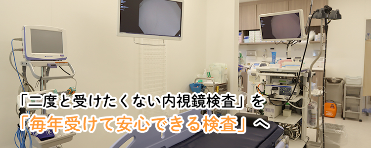 当院での内視鏡検査は「つらくない」「苦しくない」と定期的に受診してくださる方が多いです。しかし現状に甘んじることなく、安心して検査を受けていただけるよう、新しい鎮静剤(麻酔)への変更、検査後のお腹のハリが和らぐ炭酸ガスなどを使い、より苦痛がなく、正確な検査ができるよう新しい検査方法や技術を取り入れてまいります。